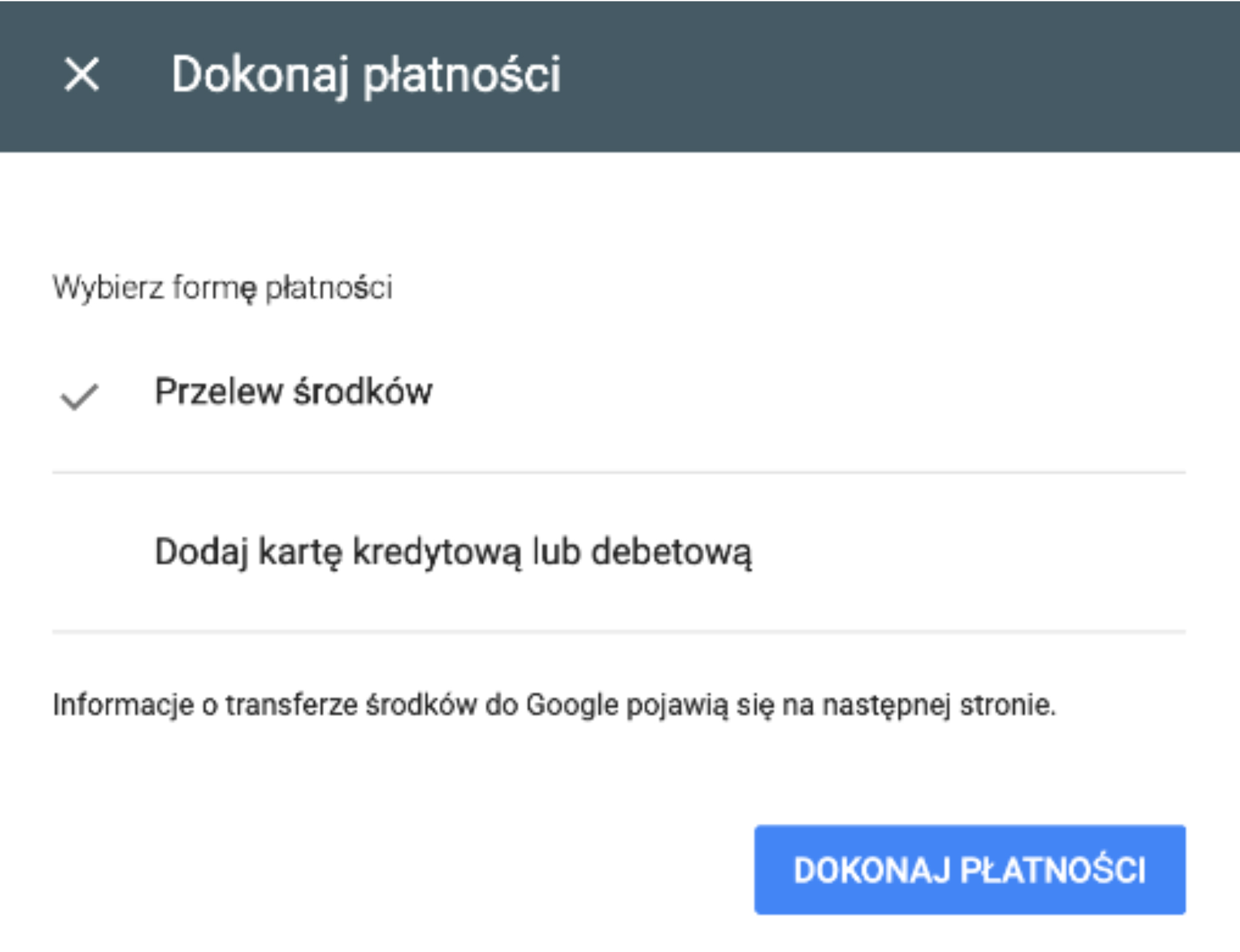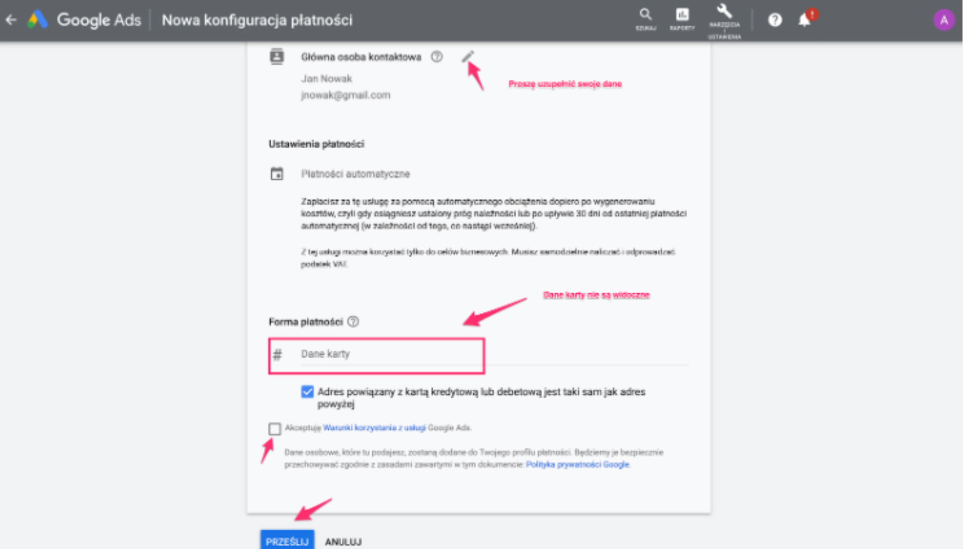 8. Następnie kliknij ‘’Dodaj informacje o płatności’’.