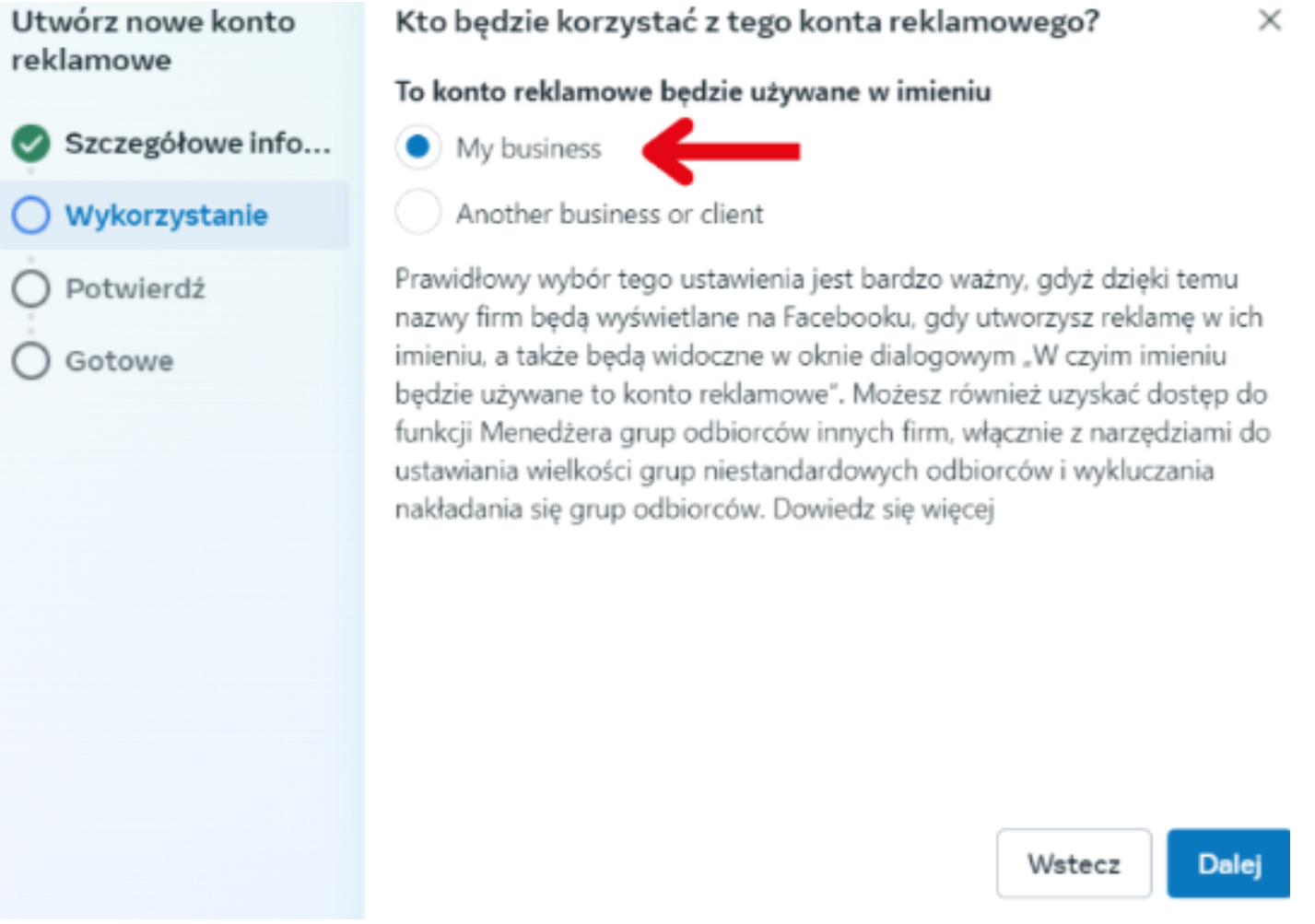Pamiętaj, aby robić, to będąc zalogowanym na prywatny profil, z którego masz utworzone lub będziesz tworzyć konto reklamowe!