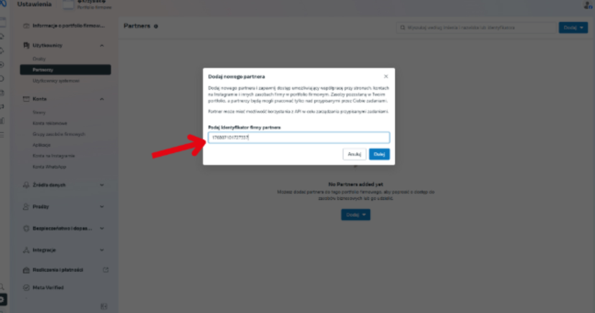 4. Kliknij niebieski przycisk „Dodaj”, a następnie „Przyznaj partnerowi dostęp do swoich zasobów”.